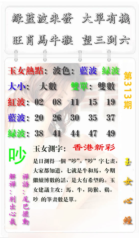 | 精彩推荐 | 313期:站长推荐强料→《美女一尾中特图》只求稳赚钱! | xin.hk800901.com | 香港新彩 |