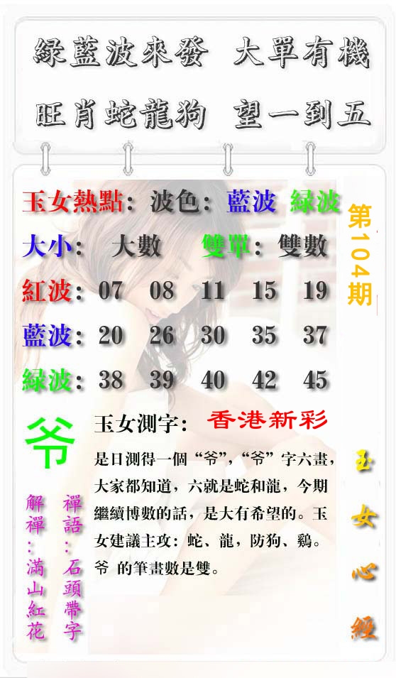 | 精彩推荐 | 104期:站长推荐强料→《美女一尾中特图》只求稳赚钱! | xin.hk800901.com | 香港新彩 |